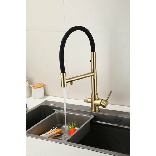 Смеситель для кухни с каналом для фильтрованной воды и гибким изливом IDDIS Ikon IKNMGFFi05 матовое золото