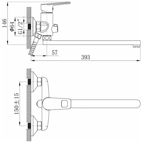 Смеситель для ванной tokito kin tok-kin-1015 с длинным изливом