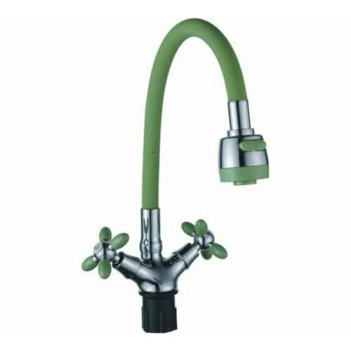 Эверест В57-071E, Смеситель для кухонной мойки с гибким изливом, гайка, зелёный
