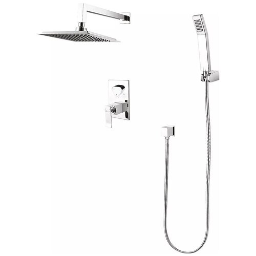 В комплекте поставки:смеситель (внешняя и внутренняя части); излив;ручной душ с держателем;шланг со шланговым подключением;верхний душ с кронштейном.