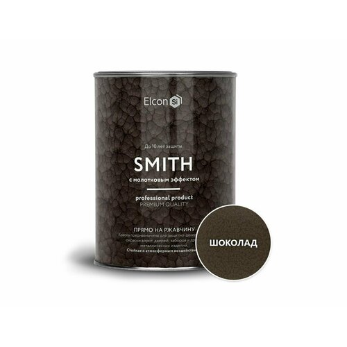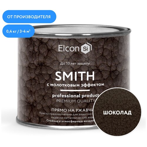 Быстросохнущая краска по металлу Elcon Smith с молотковым эффектом, шоколад, 0,4 кг