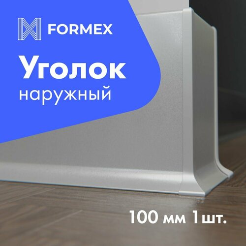 Угол наружный алюминиевый матовый серебро для плинтуса FORMEX, H100 мм