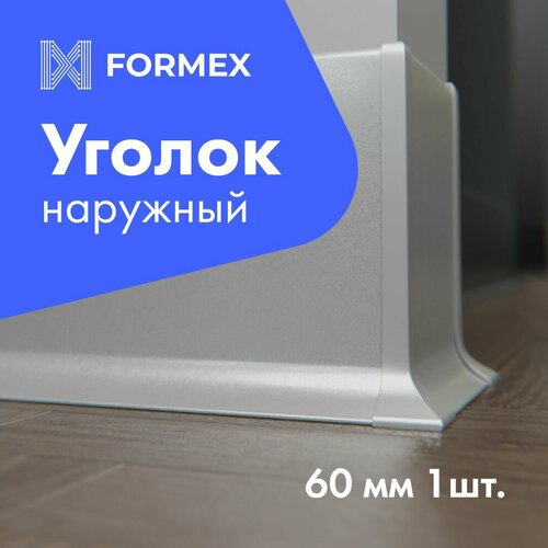 Угол наружный алюминиевый матовый серебро для плинтуса FORMEX, H60 мм