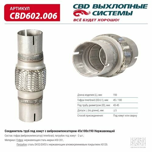 Соединитель труб под хомут с виброкомпенсатором 45x100x190 Нерж сталь. CBD602.006 ВЕС CBD CBD602006, CBD602006 Cbd CBD602.006