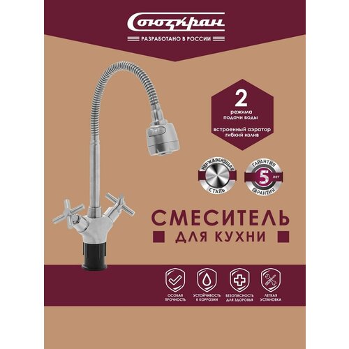 СоюзКран Смеситель для кухни, гибкий излив, керам. картридж 40мм, цинк, SK01-F106