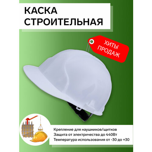Каска строительная / защитная Лидер желтая с электрозащитой, креплениями для наушников, щитков