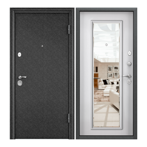Дверь входная для квартиры Torex Flat L 860х2050 правый, тепло-шумоизоляция антикоррозийная защита, замки 4-го и 2-го класса, зеркало, черный/бежевый