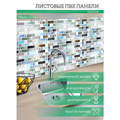 Стеновые панели ПВХ с 3D эффектом для стен, для ванной, для кухни, мозаика Капля 955х488 мм