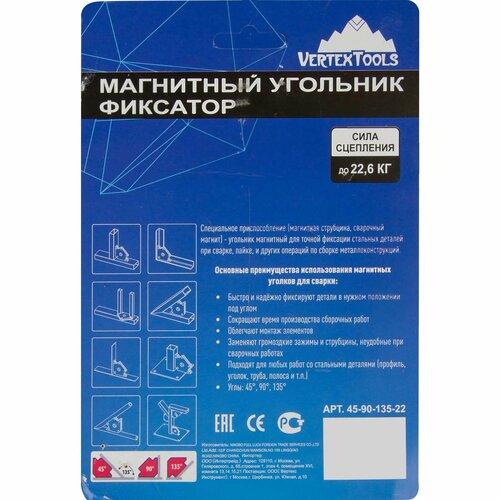 Магнитный уголок для сварки Vertextools до 22.6 кг
