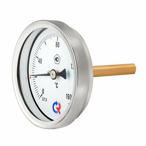 Термометр биметаллический d=63мм, аксиальный, G 1/2" НР, кл. т.2,5, 160С, с погружной гильзой L=46мм