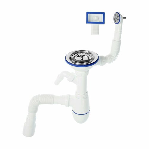 Сифон для мойки В427Р, 3 1/2"х40 мм, прямоуг/круглый перелив, отвод для стир машины