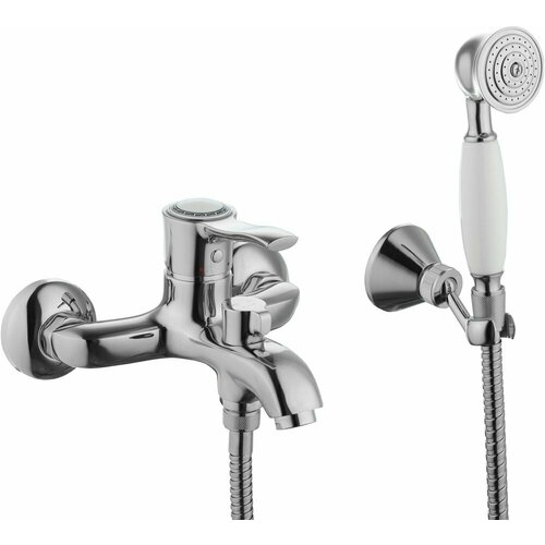 Смарт-Бриз смеситель для ванны / душа, излив 14,5 см, керамический дивертор (переключатель потока), с аксессуарами (лейка + держатель + шланг), цвет хром/белый