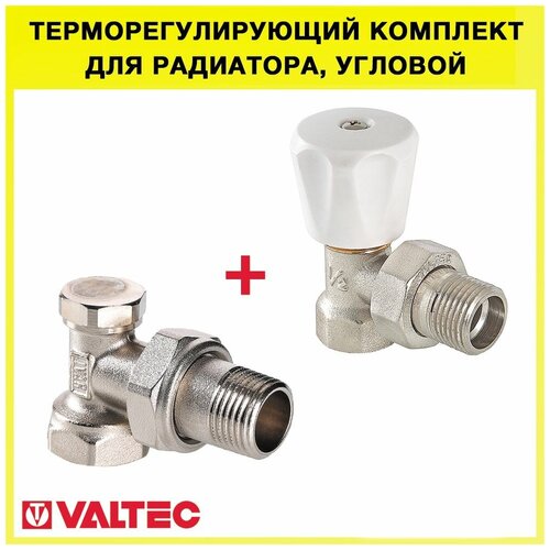 Комплект терморегулирующий угловой 1/2" вн-нар VALTEC для подключения радиатора отопления: настроечный и радиаторный клапаны, VT.101. LN.04