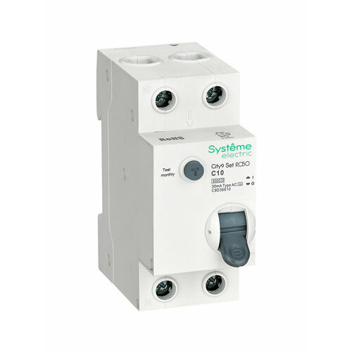 Systeme Electric City9 Set Авт. выкл. диф. тока (АВДТ) 1P+N С 10А 6kA 30мА Тип-AС 230В