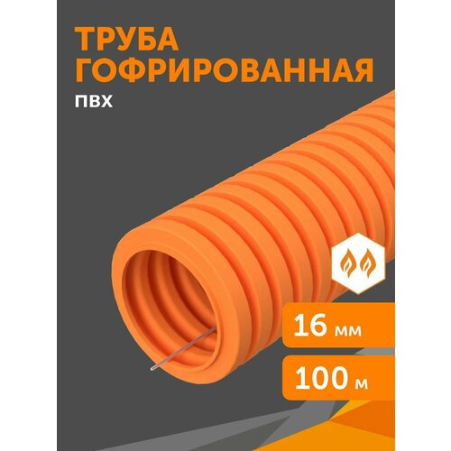 Труба гофрированная ПВХ легкая 350 Н оранжевая с/з d16 мм, Промрукав, 100 м