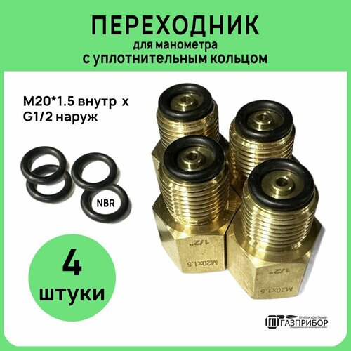 Переходник для манометра из латуни с уплотнительными кольцами (М20х1,5 внутр. - G1/2 наружн.) Комплект 4 штуки