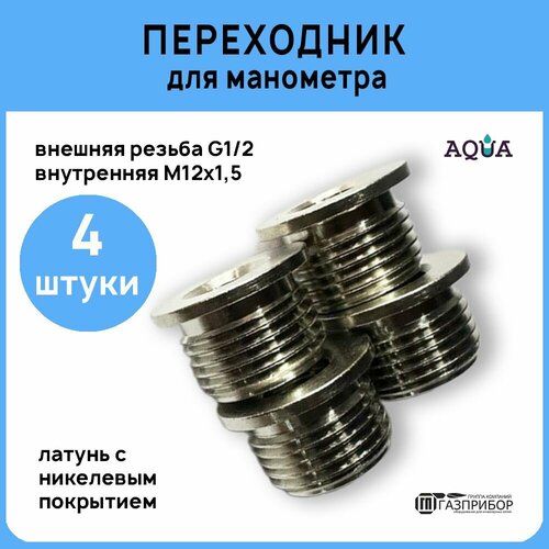Переходник для манометра G1/2xM12*1.5 никелированный, латунь Комплект 4 штуки