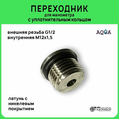 Переходник для манометра с уплотнительным кольцом G1/2xM12*1.5 никелированный, латунь