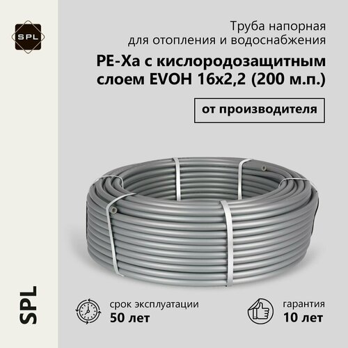Труба из сшитого полиэтилена для отопления, водоснабжения и теплого пола SPL PE-Xa 16x2.2 (10 бар, бухта 200 метров, серая)