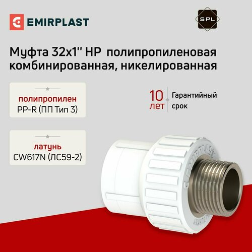 Муфта комбинированная полипропиленовая 32х1' НР SPL-Emirplast (никелированная)