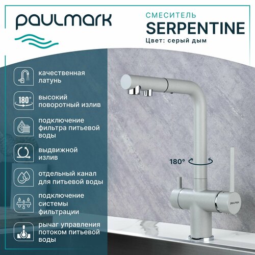 Смеситель для кухни с выдвижным изливом Paulmark SERPENTINE, с подключением фильтра питьевой воды, Se213222-GR