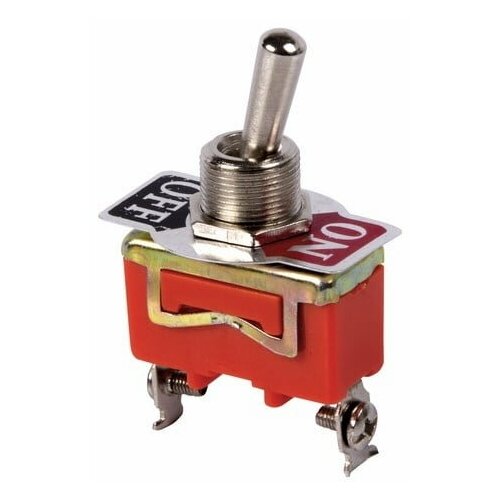 частичнаяТумблер 250V 15А (6c) ON-OFF-(ON) двухполюсный предназначен для коммутации электрических цепей переменного тока напряжением до 250В. Такая разновидность переключателей применяется на лицевых панелях в качестве комплектующих изделий различного электрооборудования (в измерительных приборах, блоках питания, электроустановках на различных производствах, легковых и грузовых автомобилях, поездах и многих других местах). Отличительной особенностью тумблера является перекидной переключатель, принцип действия которого основан на его перемещении в одну из позиций. Для переключения в нужное положение требуется приложить некоторые усилия. Монтаж осуществляется без применения винтов на плоских панелях толщиной от 0.8мм до 4мм. Подключение контактов осуществляется с помощью винтов.