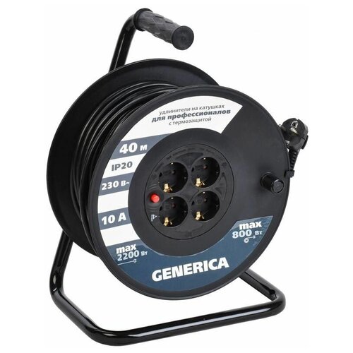 Удлинитель на катушке Generica УК40 WKP20-16-04-40-G, 4 розетки, с/з, 10А / 2200 Вт 40 м 1.5 м² 4
