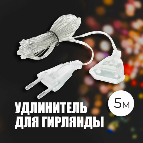 Удлинитель для гирлянды прозрачный 5м белый, бесцветный