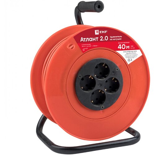 Удлинитель силовой на катушке EKF 4х50м с заземл.10А IP20 Атлант 2.0 ПВС 3х1 2.2кВт PROxima, UKA02-10-310-4-50