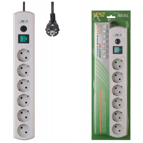 Сетевой фильтр MOST Real R, 6 розеток, с/з, 6А / 1300 Вт 5 м 380 мм 60 мм 50 мм 6