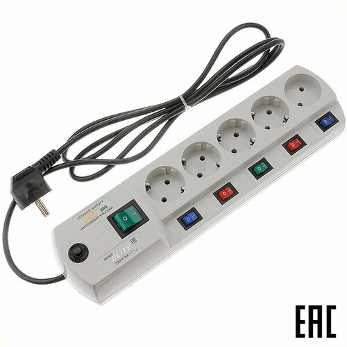 Сетевой фильтр Most ERG 4 роз. "евр" + 1 роз. 2м серый 10А 350Дж СЗП Энергия