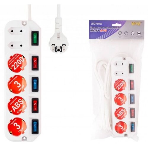 Сетевой удлинитель Most A10 3м 6 розеток пакет ПЭ