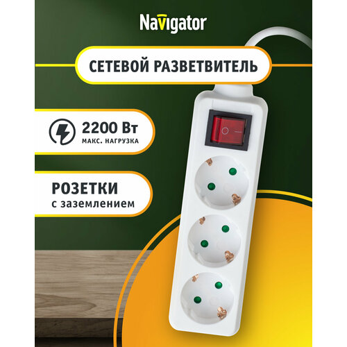 Удлинитель Navigator 71 455 NPE-S1-03-300-ESC-3x0.75, 3 розетки, с/з, 10А / 2200 Вт 3 3 м 0.75 кв. мм 330 мм 162 мм 80 мм