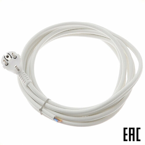 Шнур ПВС-ВП-3х1,5-5,0 армированный вилкой "евр" 5м белый Электрическая мануфактура