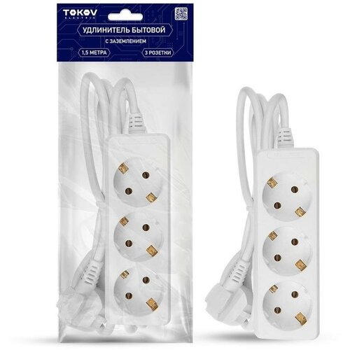 Удлинитель 3х1.5м с заземл. 10А 3х0.75 | код. TKE-C01-BU3-1.5-075-Z | TOKOV ELECTRIC (50шт. в упак.)
