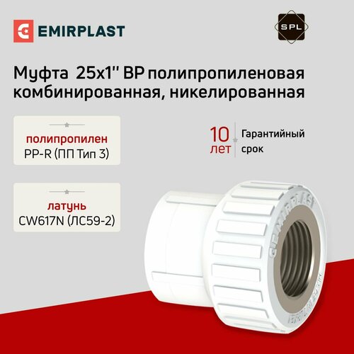 Муфта комбинированная полипропиленовая 25х1' ВР SPL-Emirplast (никелированная)