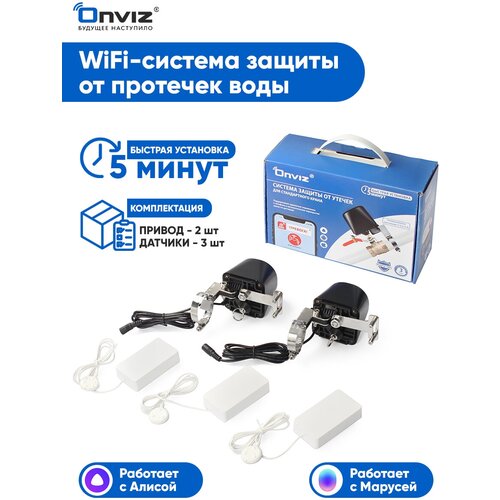Универсальная WiFi система защиты от протечек воды Onviz, G 1/2, G 3/4, быстрый монтаж, беспроводные датчики, управление со смартфона, Алиса, Маруся