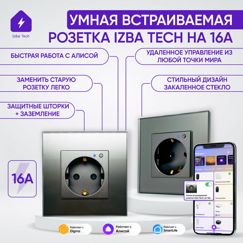Умная встраиваемая розетка для Алисы на 16А стеклянная серого цвета