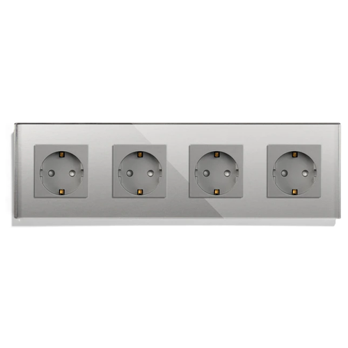 Четверная встраиваемая розетка на 16А стеклянная серая