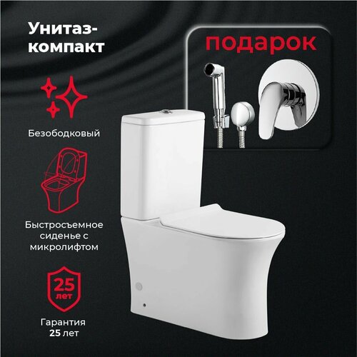 Унитаз-компакт с сиденьем микролифт Agger AP01000 в подарок смеситель с гигиеническим душем