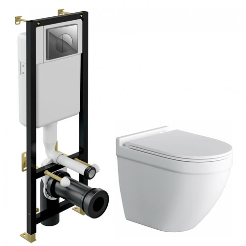 Унитаз Parva New Clean On безободковый смыв с инсталляцией Cersanit Black (комплект) сид. дюропласт микролифт, кнопка Leon хром 64229