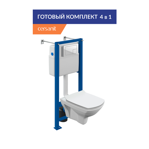 Унитаз подвесной с инсталляцией, кнопкой и сиденьем Cersanit 64119