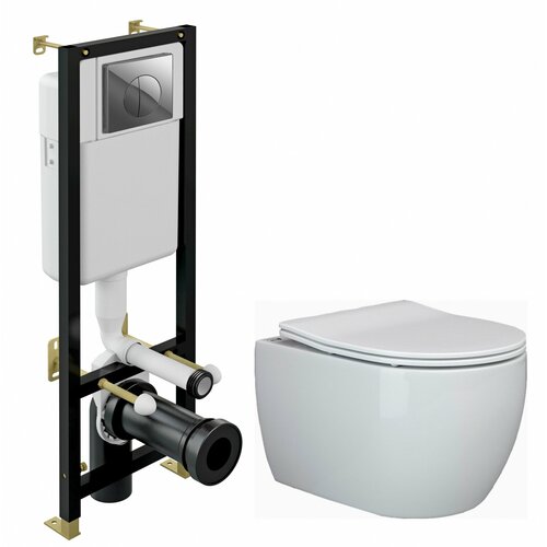 Комплект 3 в 1 инсталляция Cersanit Black + Унитаз Vincea Ultra Rimless VT1-32 + кнопка хром