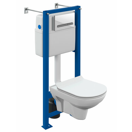 Унитаз подвесной с инсталляцией, кнопкой и сиденьем Cersanit 63517
