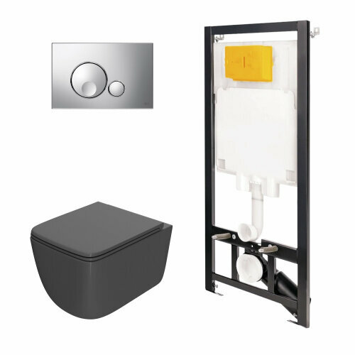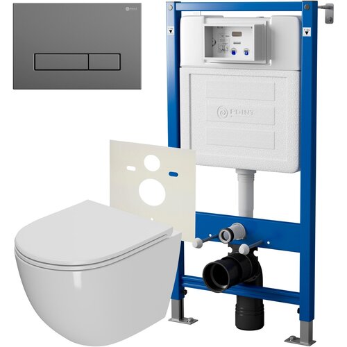Point Сет система инсталляции, клавиша смыва цвет графит и подвесной унитаз PN48056GM