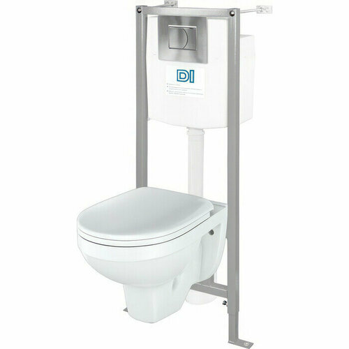 Комплект унитаза Rosa Рио с инсталляцией и клавишей хром, крышка-сиденье