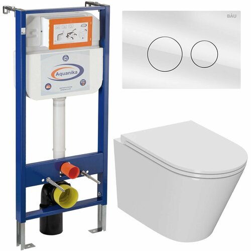 Комплект BAU 6 в 1: инсталляция BAU Aquanika, унитаз безободковый торнадо обратного потока Bau Nimb Hurricane-2, сиденье микролифт, белая клавиша