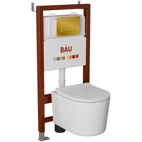 Комплект BAU 6 в 1: инсталляция BAU PRO, унитаз подвесной торнадо Bau Dream Hurricane-2, сиденье дюропласт микролифт, клавиша BAU Stil, золото
