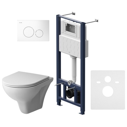 Сет: AZARIO инсталляция + унитаз Teramo (круглый) с сидением микролифт + панель смыва, AZ-8010-1000+AZ-8200-0031+AZ-0053