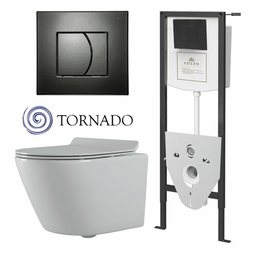 Инсталляция с подвесным унитазом CULTO TOR V30. Панель смыва черная. Система смыва Торнадо